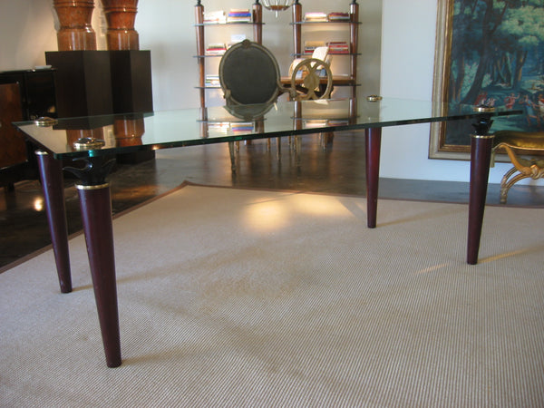rectangular glass, stained sycamore, bronze and gilt bronze