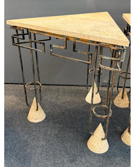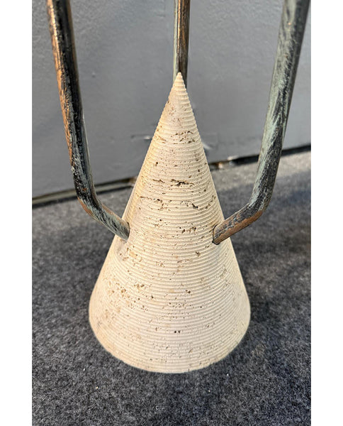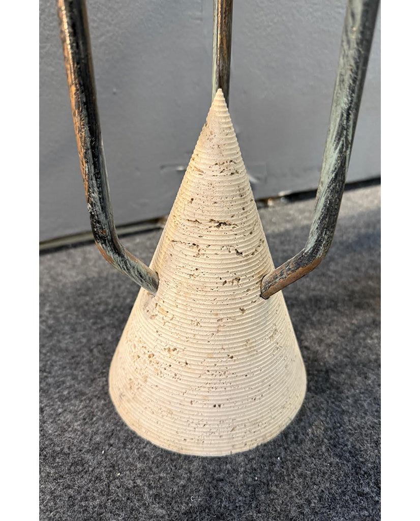 ITALIAN 1970’s IRON AND TRAVERTINE BRUTALIST CENTER TABLE