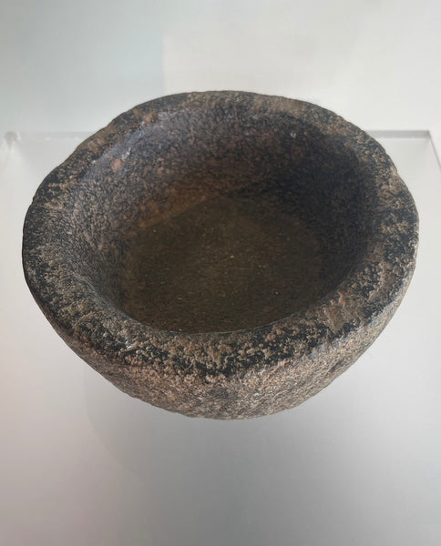 of ovoid massive shallow dish form with gently molded bulbous sides, rising to flat edge and tapering to flat bottom