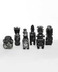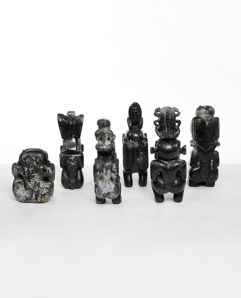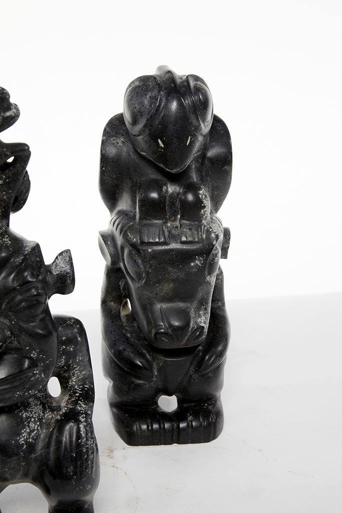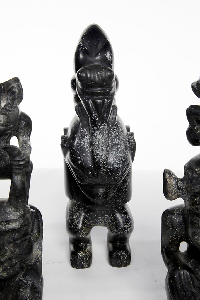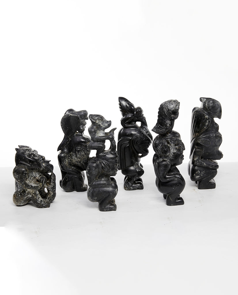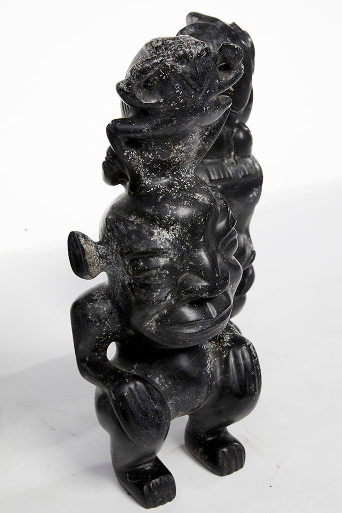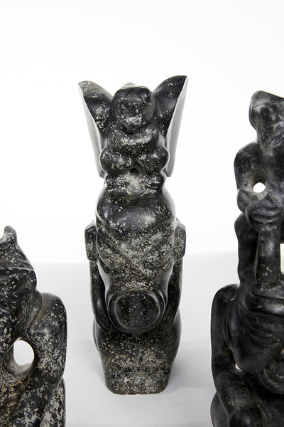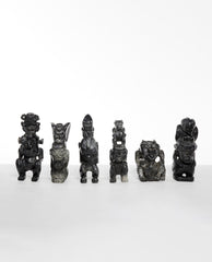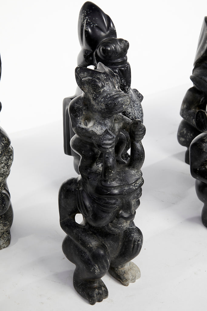 of fully realized sculpted and molded pierced forms, depicted standing, crouching or sitting in various combinations of interlocking mythical figures and animals