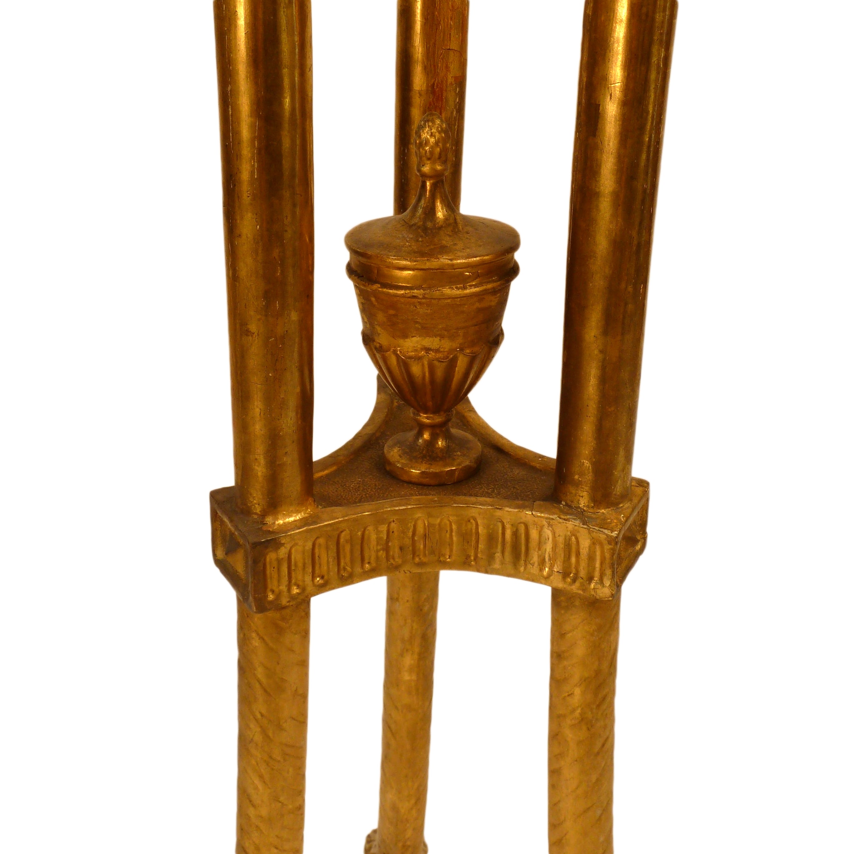 each with tripod scrolling support centering classic urn with suspended bead