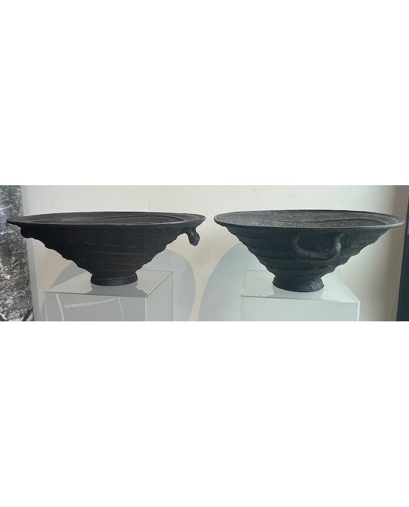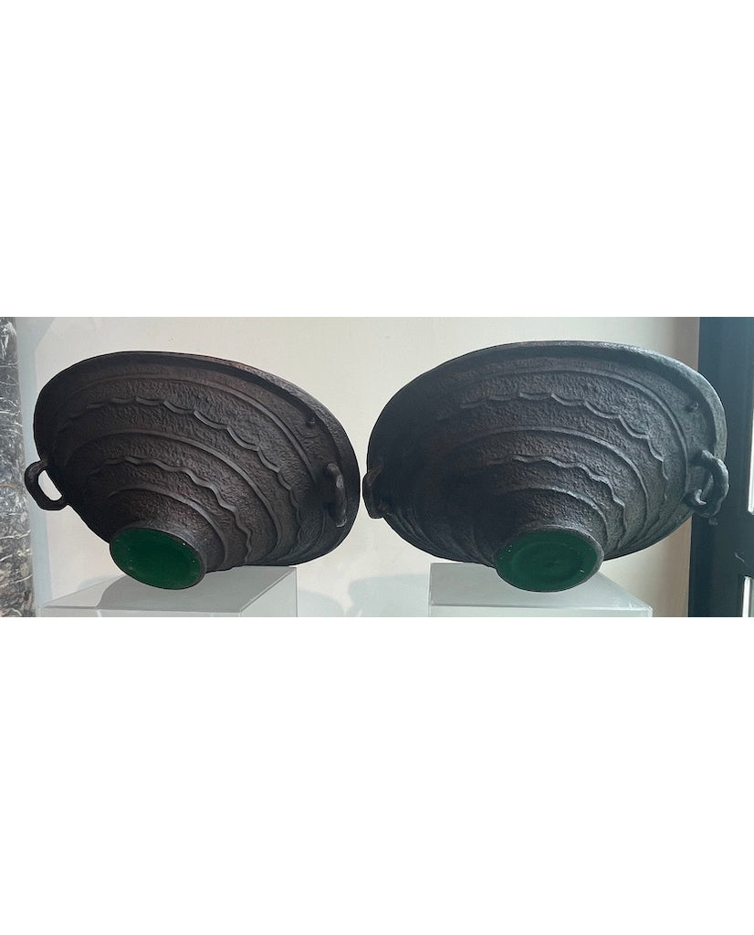 PAIR OLOF HULT “SNÄCKURNAN” CAST IRON URNS