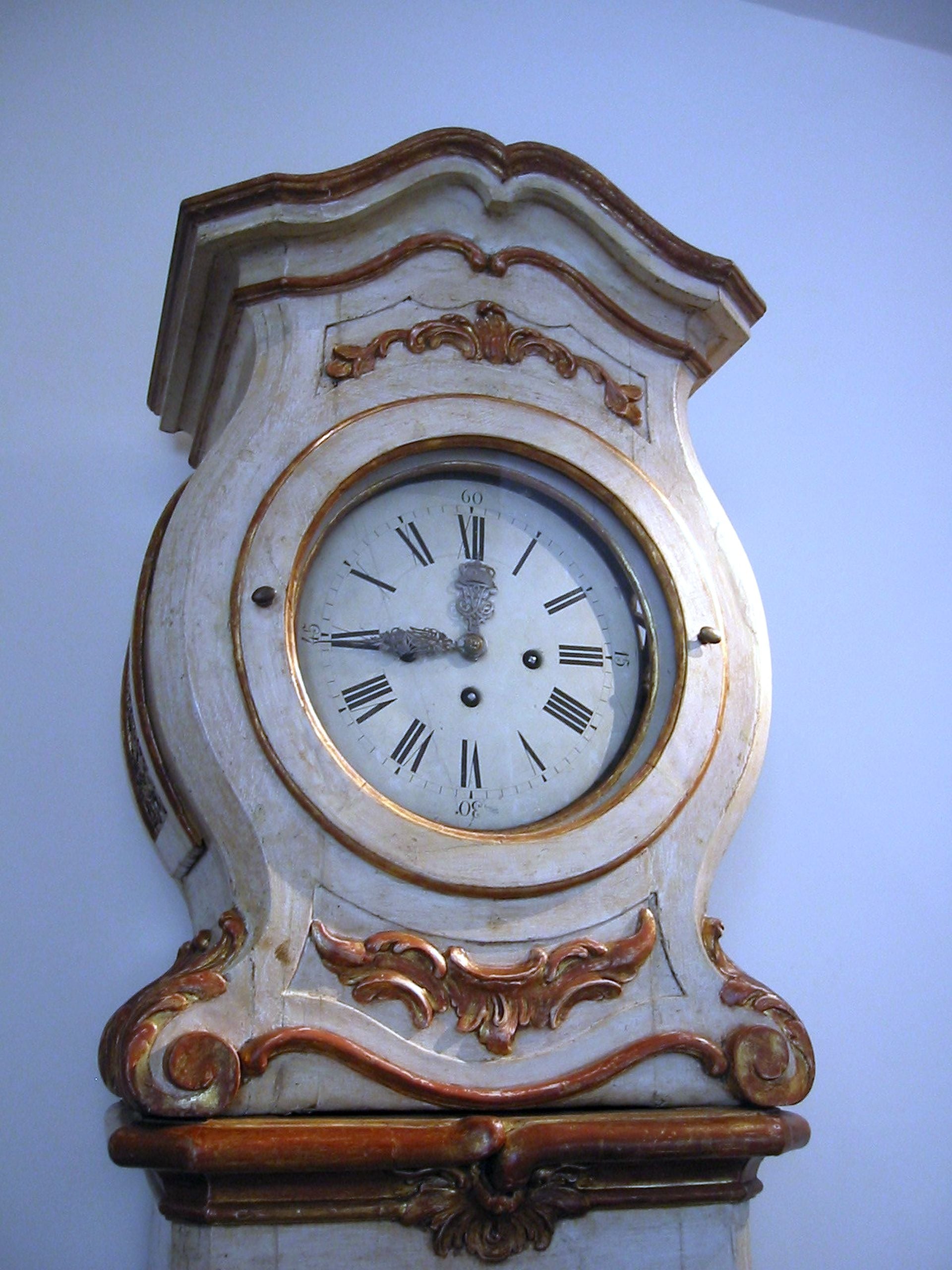 ROYAL DANISH ROCOCO PAINTED AND PARCEL GILT CLOCK