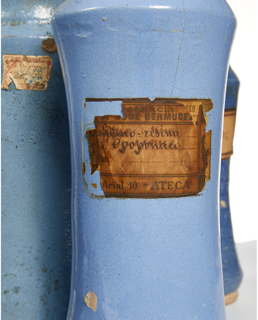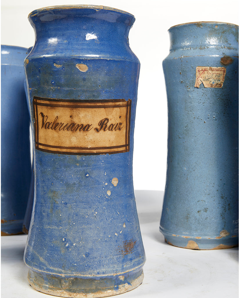 SET/8 PORTUGUESE BLUE GLAZED FAIENCE ALBARELLO