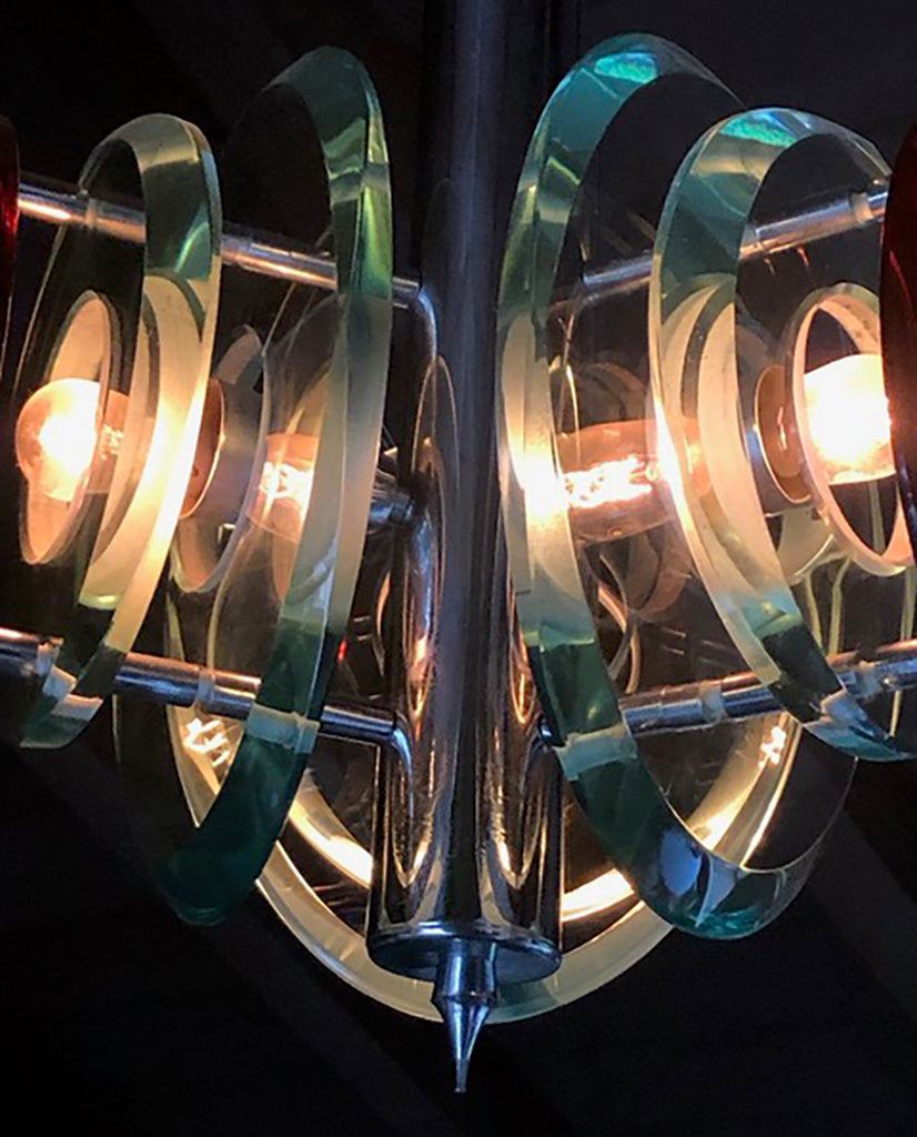 MAX INGRAND ATTRIBUTED GLASS AND CHROME PENDANT LIGHT