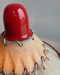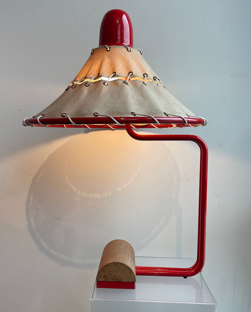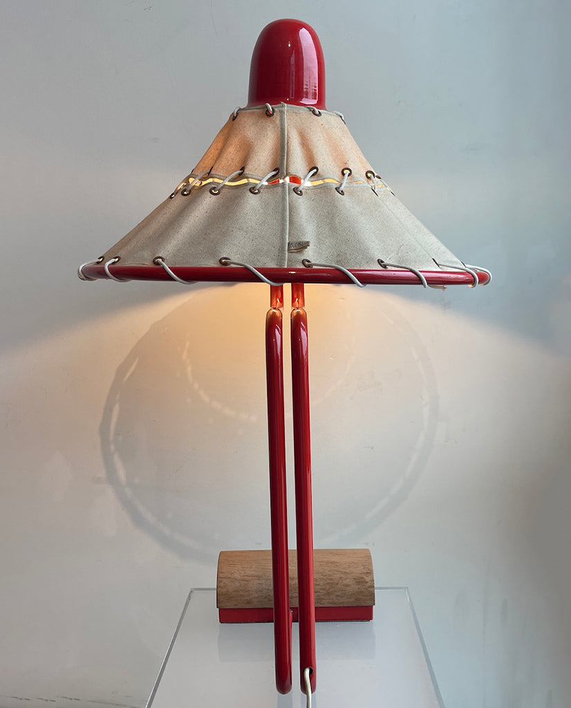 INGRID OF SWEDEN RED ALUMINUM, CANVAS, ROPE AND BEECHWOOD LAMP