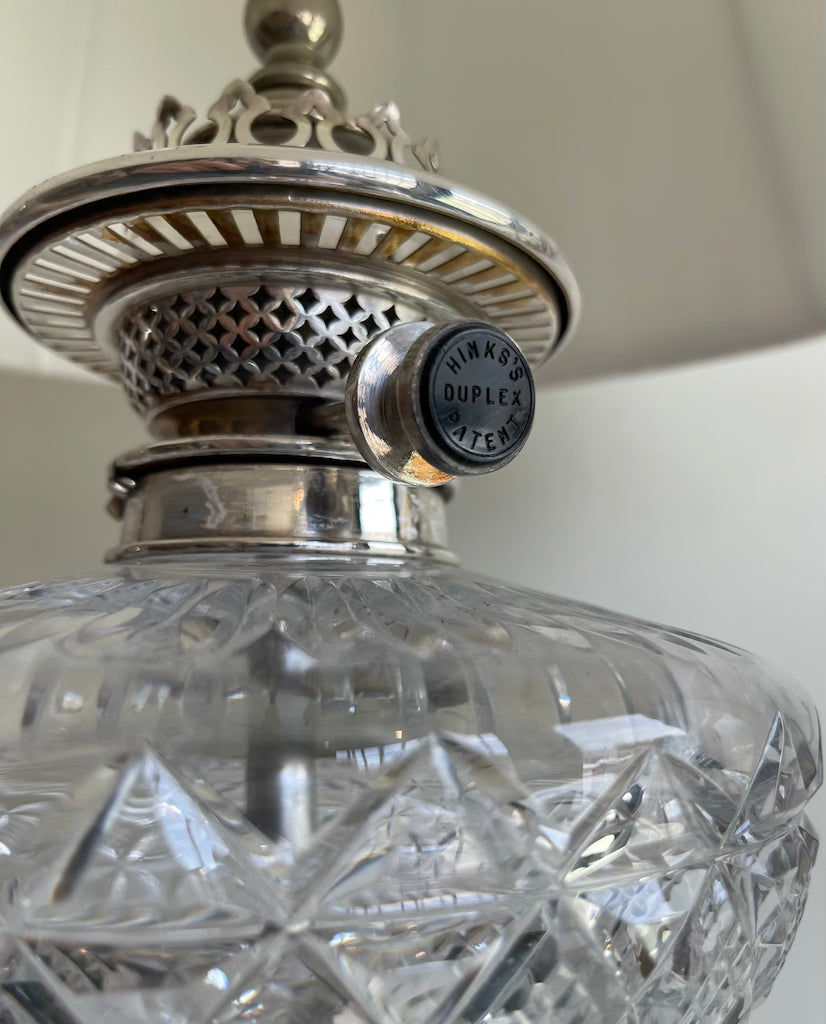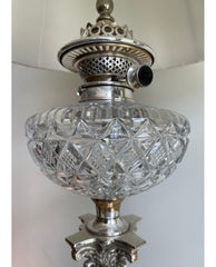SAMUAL S. MESSENGER & SONS SILVER PLATE AND CUT CRYSTAL OIL LAMP