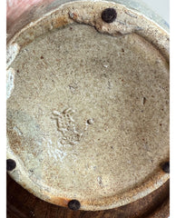 of bulbous ovoid high shouldered form, tapering to rolled rim and tapering gently to flat foot; the whole enriched with iridescent blue and white glaze, Chinese character for water and ?, on base
